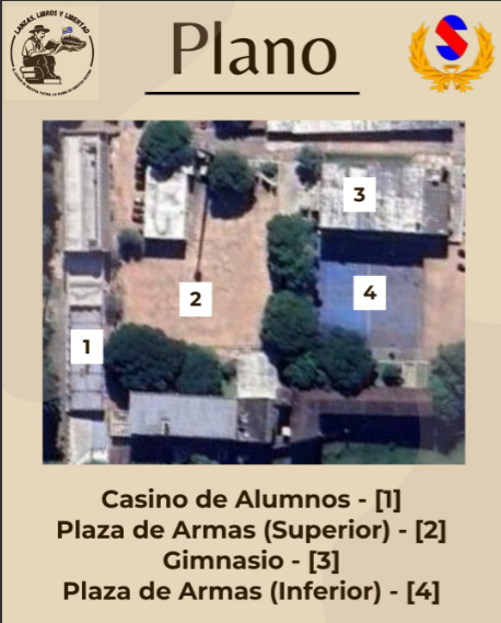 Nos enorgullece dar el comunicado que tendremos diferentes actividades, una Obra de Teatro protagonizada por los integrantes de 6to año en El Casino de Alumnos[1], Un Museo al Aire Libre estructurado por nuestros alumnos de 5to año en La Plaza de Armas Superior[2], Una Representación sobre los hechos transcurridos el 19 de Abril de 1825, creada por nuestros camaradas de 4to año, en el Gimnasio[3], Y una esplendida Comisión de Comidas Típicas del Siglo XIX del Territorio, Organizada por ACOPALM en La Plaza de Armas Inferior [4] y finalmente se organizara un Pericón Nacional representativo de la época a manos de nuestros alumnos de 6to año.
